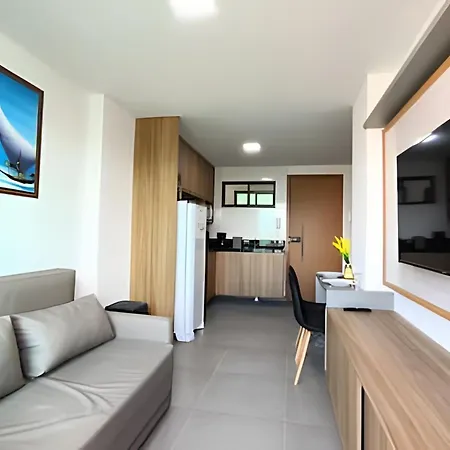 Il Rooftop Tamandaré by Temporada Inn dispone di un salottino, completo di un armadietto, nonché di servizi quali un impianto di climatizzazione.
